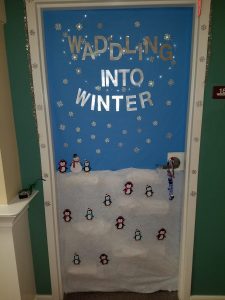 The doors in the hallways reflected the holiday spirit. The door decorating contest winners were announced at the Christmas party. Thank you to all that participated.