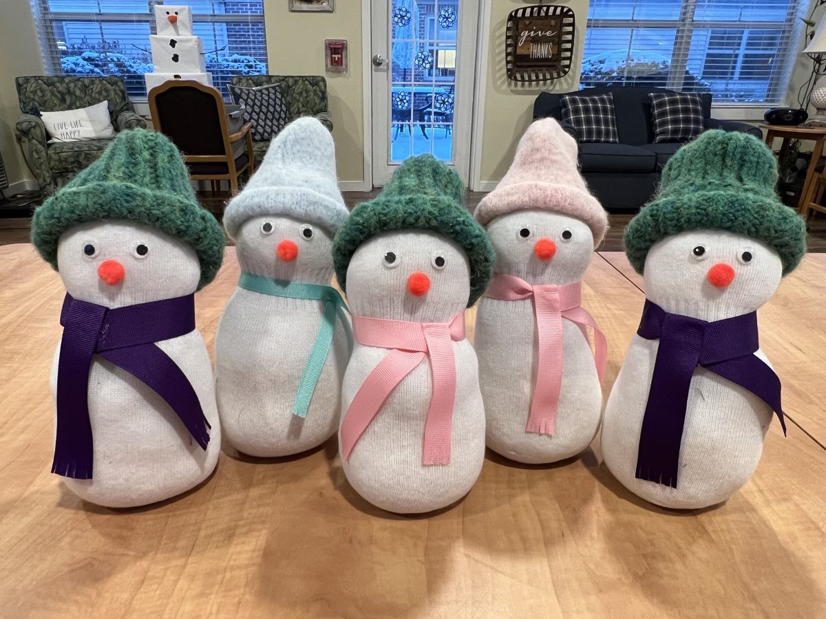 Our residents are always busy making new crafts and paintings! If you walk down the middle of the cottage, you’ll find a beautiful gallery of artwork. In the recent month, residents have started making things for the winter season as well as to decorate for Valentine’s Day. They loved making snowmen made from socks as well as clay conversation heart ornaments!