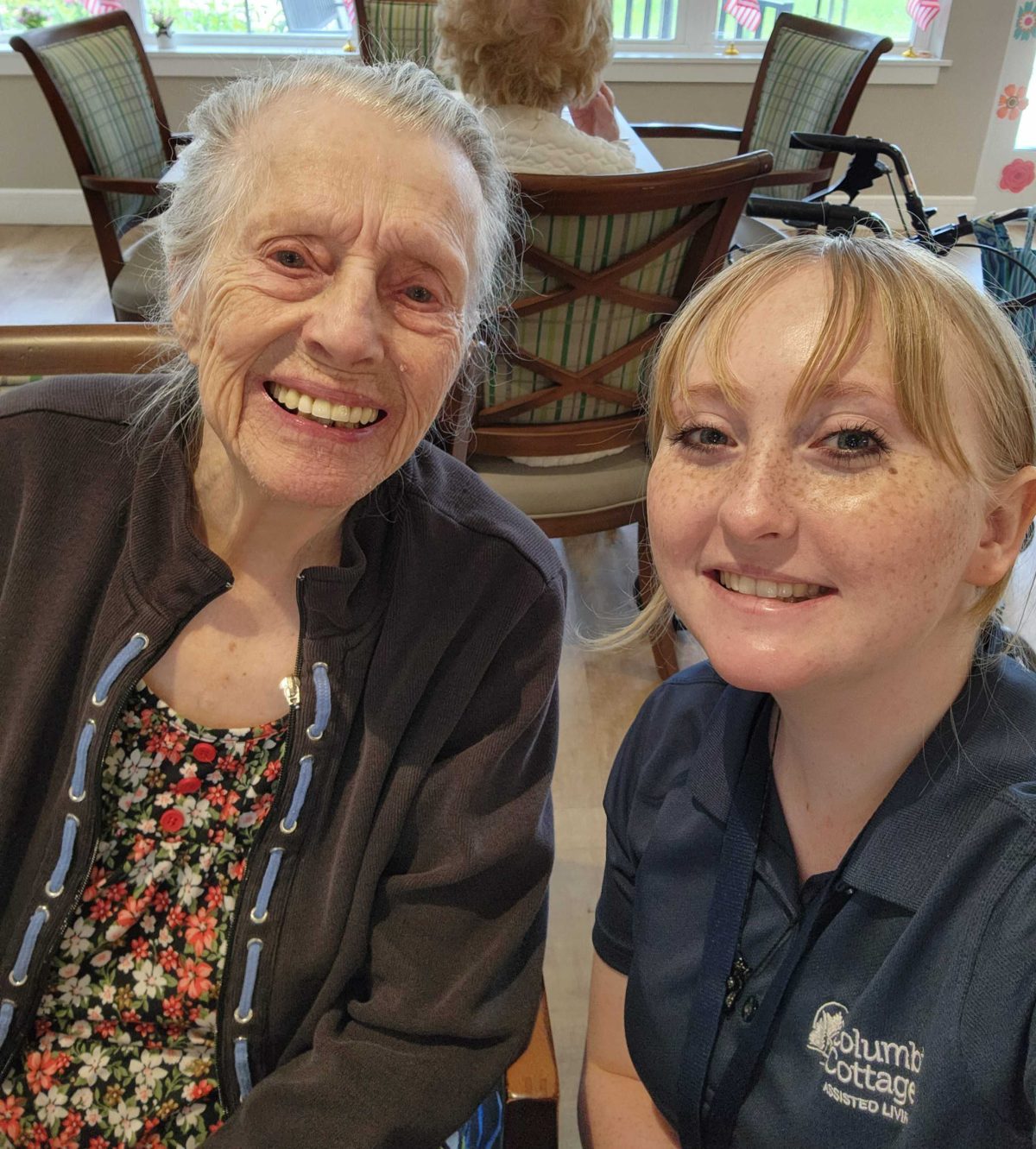 We enjoyed taking selfies throughout the day while we socialized on the porch, participated in music therapy, pet therapy, and walking through our community.